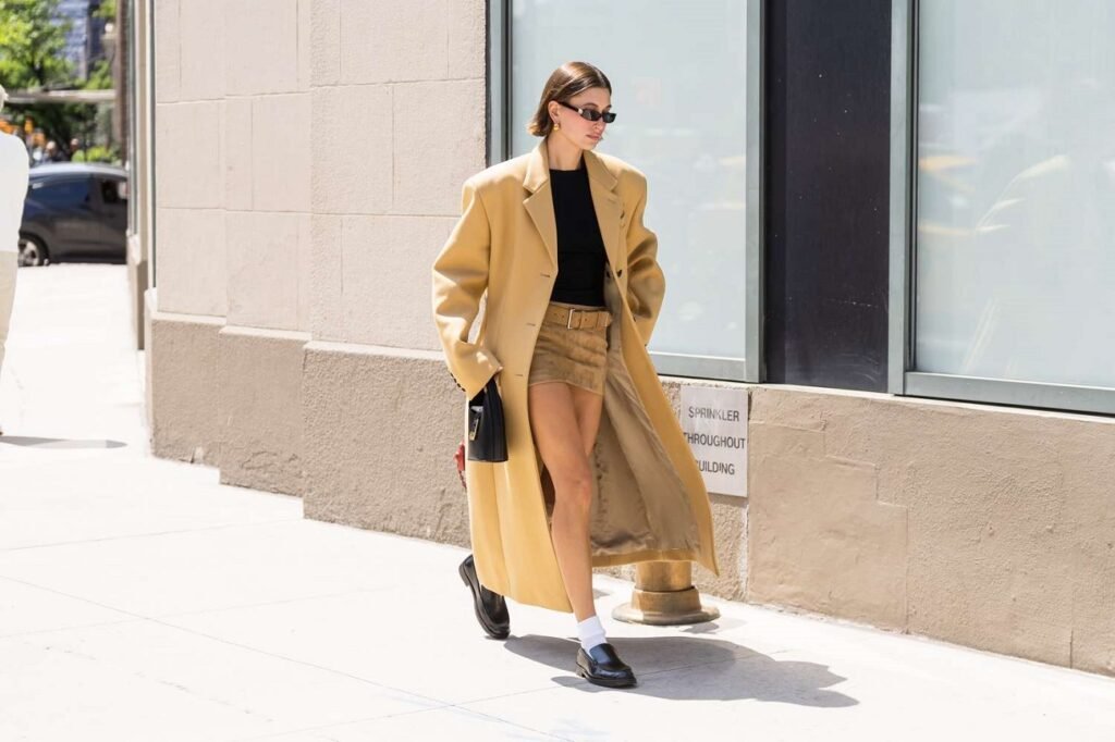 Accessories in this style are equally deliberate. Jewelry stays minimal: simple gold hoops, thin bracelets, geometric studs. Bags are structured and monochromatic, often in black or tan. Shoes follow the same philosophy—clean lines, solid craftsmanship, and versatility. White sneakers, leather loafers, Chelsea boots, and streamlined sandals are staples that carry through seasons.