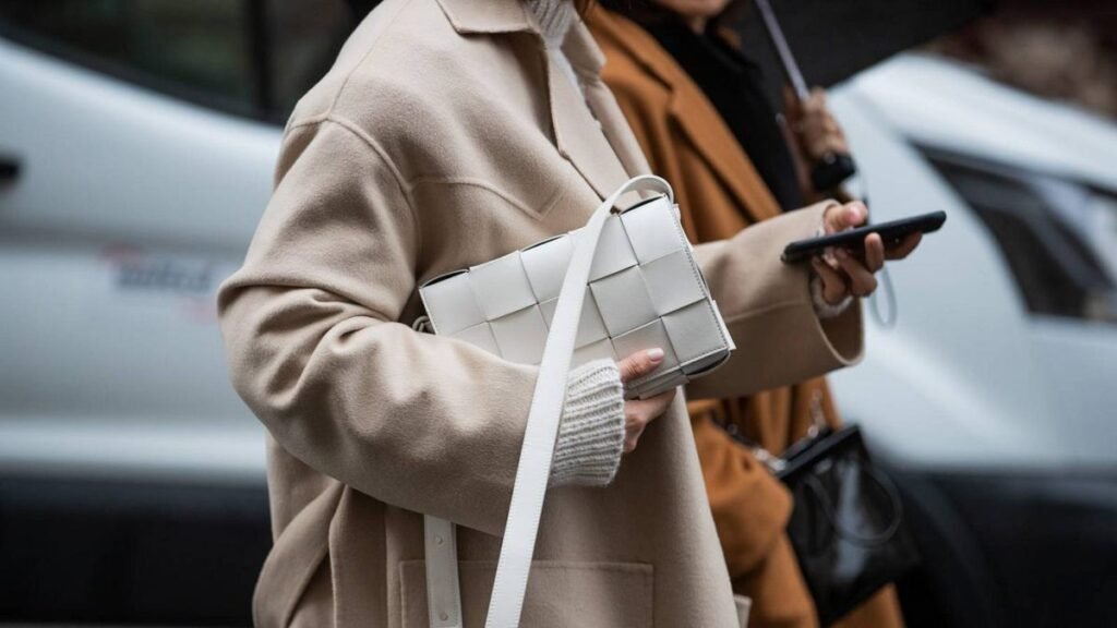 Accessories in this style are equally deliberate. Jewelry stays minimal: simple gold hoops, thin bracelets, geometric studs. Bags are structured and monochromatic, often in black or tan. Shoes follow the same philosophy—clean lines, solid craftsmanship, and versatility. White sneakers, leather loafers, Chelsea boots, and streamlined sandals are staples that carry through seasons.